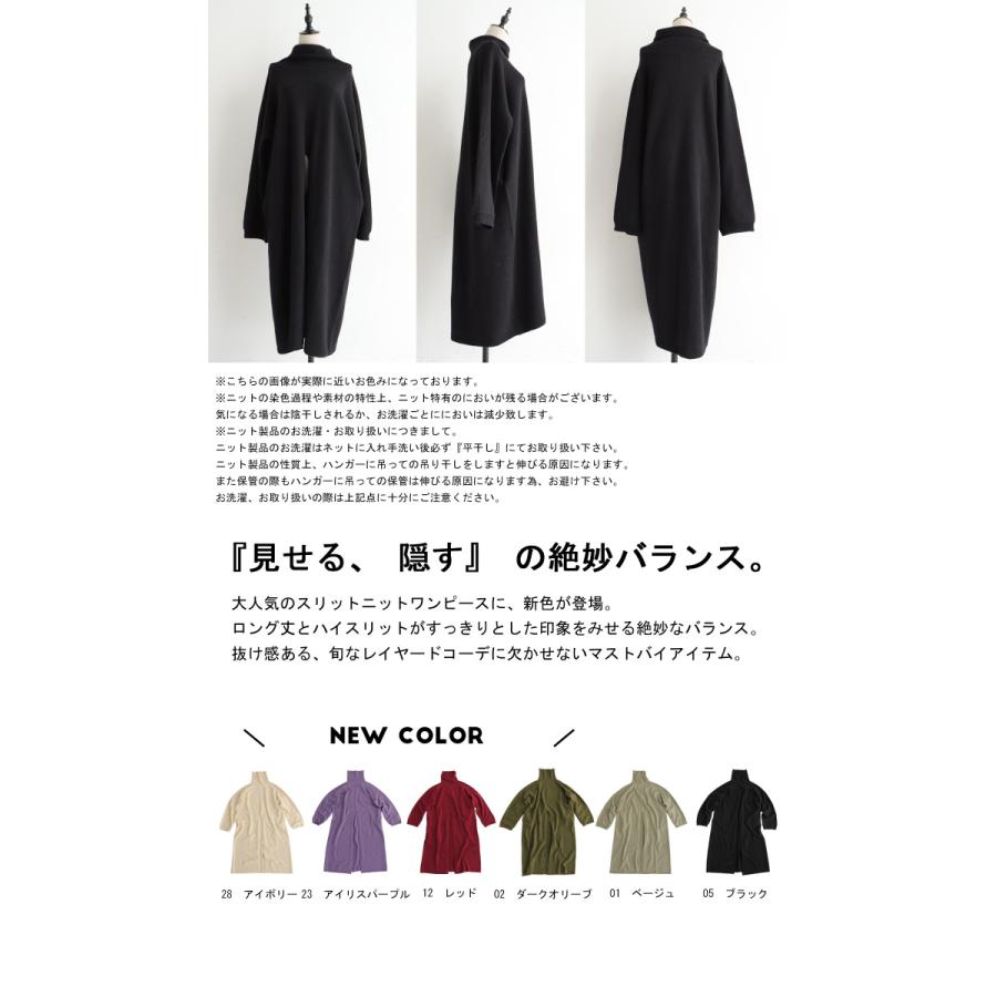 タートルネック サイドスリット ニットワンピース 2色 A1139 ワンピース Buyma